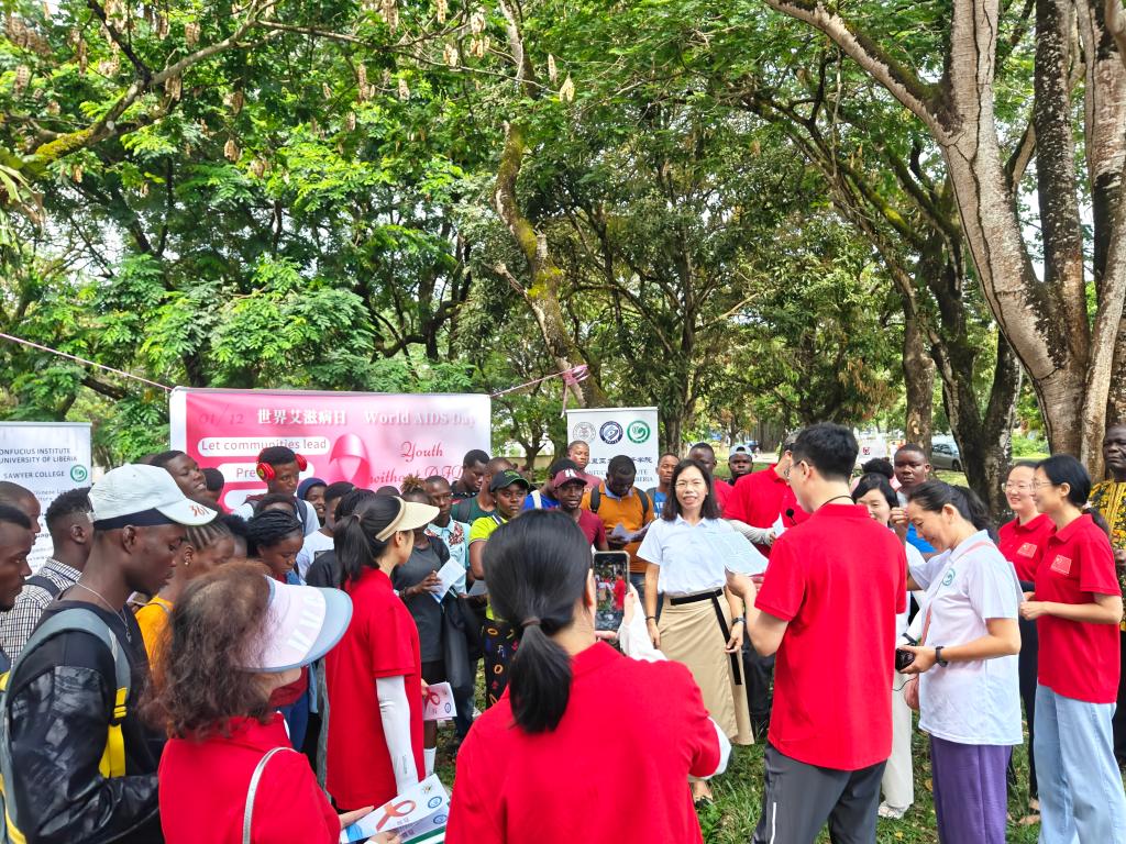 当地时间2023年12月1日,利比里亚大学孔子学院联合第16批援利医疗队在利大校园举办了“世界艾滋病日”宣传活动。该活动吸引了利大上百名师生前来参与。