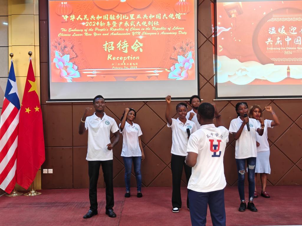 2024年2月7日,利比里亚大学孔子学院师生们应邀参加了由中国驻利比里亚使馆举办的2024新年暨尹承武大使到任招待会。参加此次招待会的有利比里亚副总统康格(Jeremiah Kpan Koung)、临时参议长劳伦斯(Nyonblee Karnga Lawrence)、利国其他政要、部分国家驻利使节、国际组织在利代表、援利医疗队、在利中方机构、中资企业及侨团侨胞代表等。
