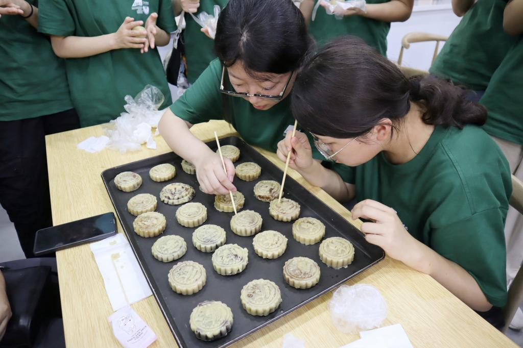 经过一下午的烘烤、包装,学院领导于当天晚上组织学工老师一起深入学生宿舍,将大家亲手制作的月饼成品送到每位同学手中,一同“赏明月、品美食、话团圆”。