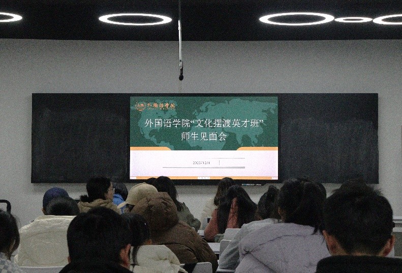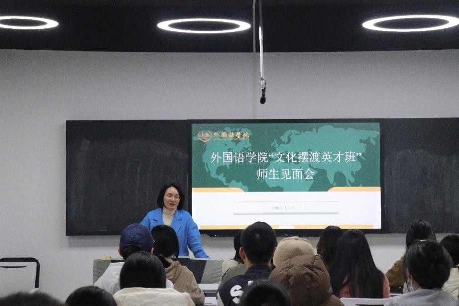 近日,太阳成集团tyc122cc入口外国语学院从2023级和2022级本科生中择优选拔40名同学组成“文化摆渡英才班”。为促进师生之间相互了解,加强班级凝聚力,12月1日,学院在金盆岭校区三号教学楼611教室举行了“文化摆渡英才班”师生见面会。学院党委副书记周芳、教学副院长季红琴、文化摆渡英才班班主任崔巍及全体英才班学员参加会议,会议由学工办辅导员毛婕主持。
