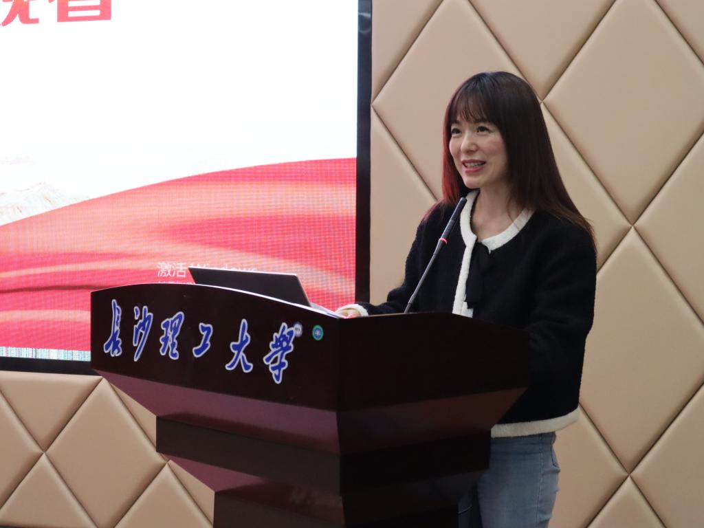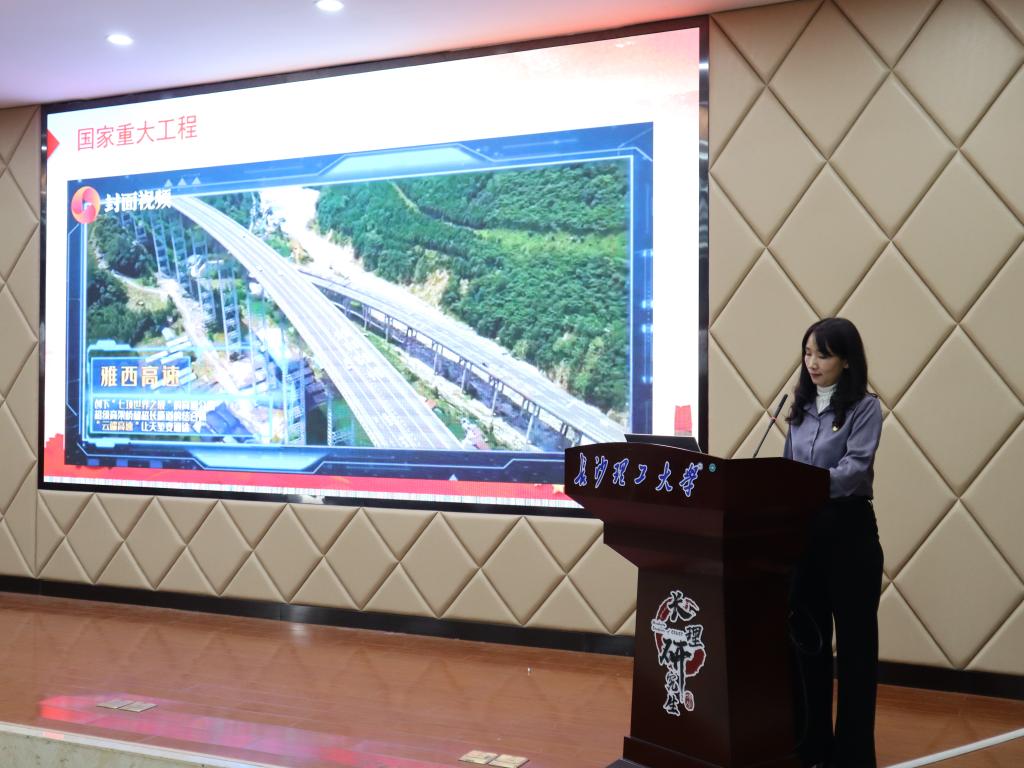 “欲筑室者,先治其基,踔厉奋发、勇毅前行,为全面建设社会主义现代化强国夯基垒石。”公外二教研室党支部书记陈润兰以“从重大工程建设看中国特色社会主义制度优势”为题,结合深中通道、复兴号动车组、“奋斗者号”潜艇等重大工程,生动形象地向到场观众讲解了中国特色社会主义制度优势。