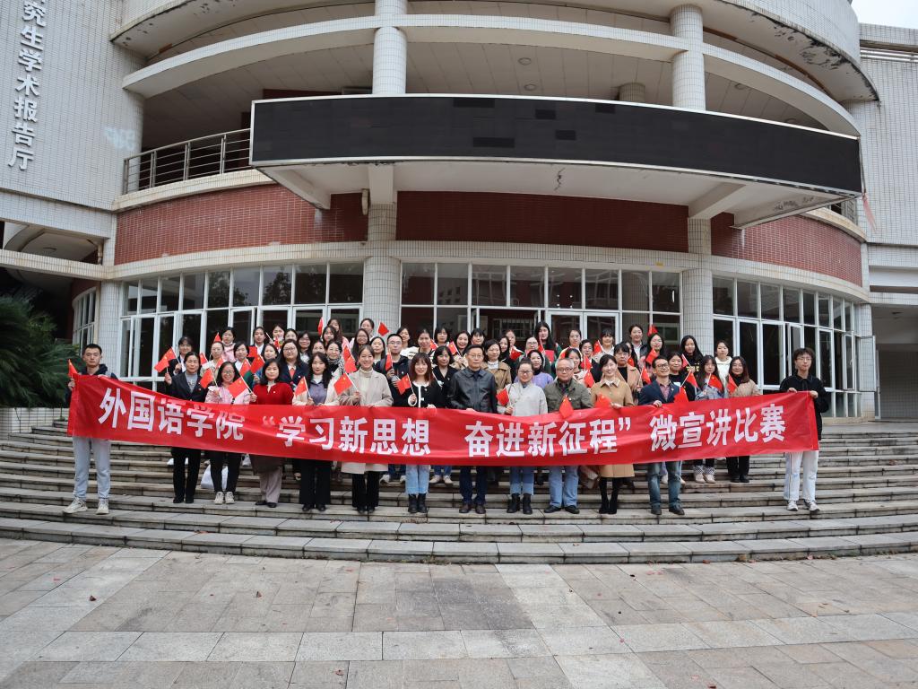 11月15日下午14:30,太阳成集团tyc122cc入口外国语学院在云塘校区文科楼A-200学术报告厅举办了“学习新思想,奋进新征程”主题微宣讲比赛。校工会常务副主席郭剑、党政办副主任喻玲、教务处副处长邓丰、党建组织员邓豫出席活动并担任评委,外国语学院全体师生党员热情参与。