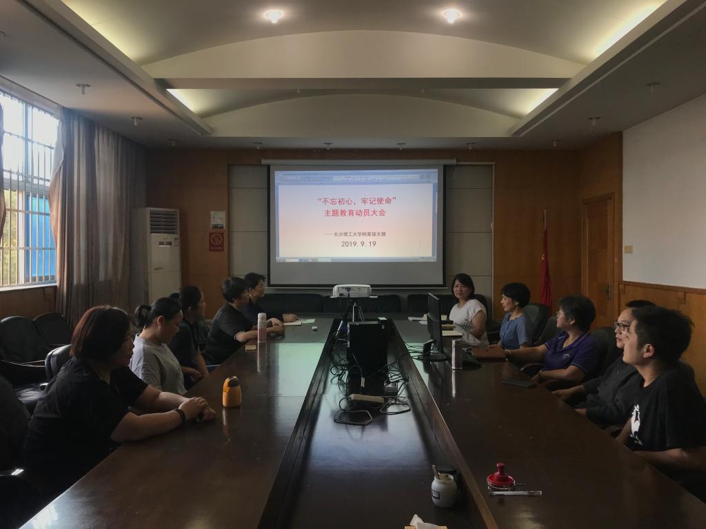 9月19日下午,档案馆 “不忘初心、牢记使命”主题教育动员会在金盆岭校区办公大楼3会议室召开,档案馆全体党员参加了会议。会议由支部书记、馆长许建兰主持。