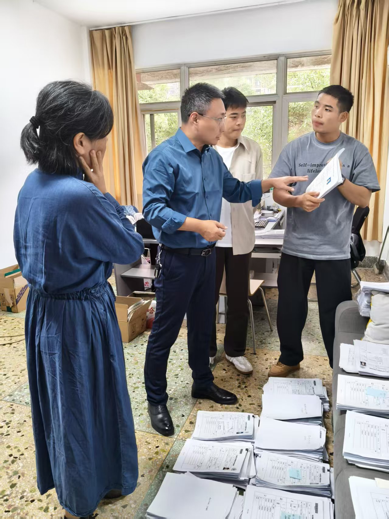 在各学院,王任飞详细介绍了学生档案管理系统上线以来的新流程、新标准,全体走访人员重点围绕“收得齐、理得清、交得稳”三个环节进行沟通交流,并手把手指导辅导员对新生档案进行分类、排序、编号、封装。针对“高中档案缺失补救”“团员材料认定”“转专业学生档案归并”等共性难题,走访人员逐一答疑,并给出“一对一”操作方案。