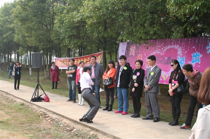 11月13日,校工会女职工委员会组织我校部分单身教职工参加了由省教育工会女职工委员会主办的,省中医药大学承办的“简单爱,说出来”大型单身教工联谊活动。来自10所高校一百多名教职工在主持人的带领下,欢聚一堂。在“一见钟情”环节中,美女帅哥们个个出口不凡,争相宣布爱情宣言,在诙谐的介绍中了解了彼此。分组组队展示队标、口号和队歌环节中,六个队既充分表现了团队协作精神,又充分展示了大胆创意和艺术才华。午饭后,茶座里三五人拉家常、谈人生,温馨甜美。千龙湖边,帅哥携美女或漫步或照相,浪漫惬意。下午的爱情大魔咒,帅哥美女们围成一圈做游戏,近距离接触,进一步叩开心门。英雄救美,让大男孩们为心仪的女孩做了一次大英雄,有两个大男孩争相救一美的,也有“英雄”救俩美的,欢声笑语溢满千龙湖。康定情缘选出四对男女,他们的钟情佳话把活动又一次推向高潮。