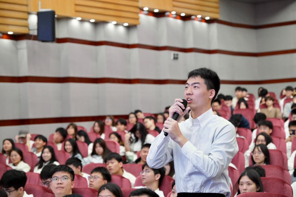 现场交流环节,大家踊跃交流,气氛热烈。“我们知道电力能源行业的工作环境大都要翻山越岭、爬坡过坎,有的还要远离城市,请问您是如何战胜各种挑战的?”“您认为作为新时代青年,应如何激发自己的创新创造活力,在具体工作中像您一样研发那么多项发明呢”我校电气学院大四学生陈浩南的提问得到了劳模代表廖丽萍的耐心解答。