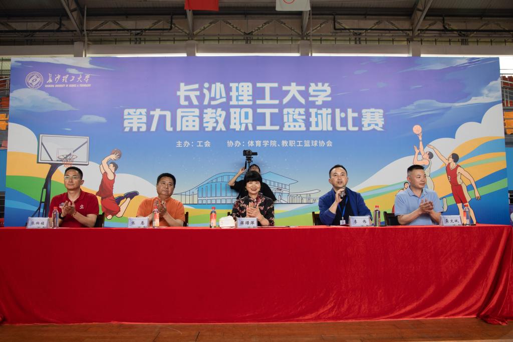 4月23日下午,我校第九届教职工篮球赛在云塘校区体育馆火热开幕,副校长、工会主席蒋璟萍出席,开幕式由工会常务副主席李伟主持。比赛由工会主办,体育学院、教职工篮球协会协办。24个分工会、19支参赛队伍、340余名男女教职员工运动员用体育之美和身心康健彰显长理人“立德树人”的昂扬斗志和拼搏精神。