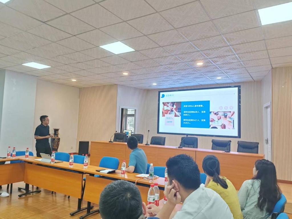心理中心专职老师对前期各项工作进行总结。贺子京对2024届毕业生心理普查和回访工作进行了全面总结,强调了心理普查与回访工作在预防心理问题以及指导工作实践中的重要作用。杨爽对月报规范填写要求、危机干预和排查工作中的注意事项进行了详细说明。规范月报填写是确保心理健康教育工作有序进行的基础,落实危机干预和排查工作则是保障学生心理安全的重要环节。