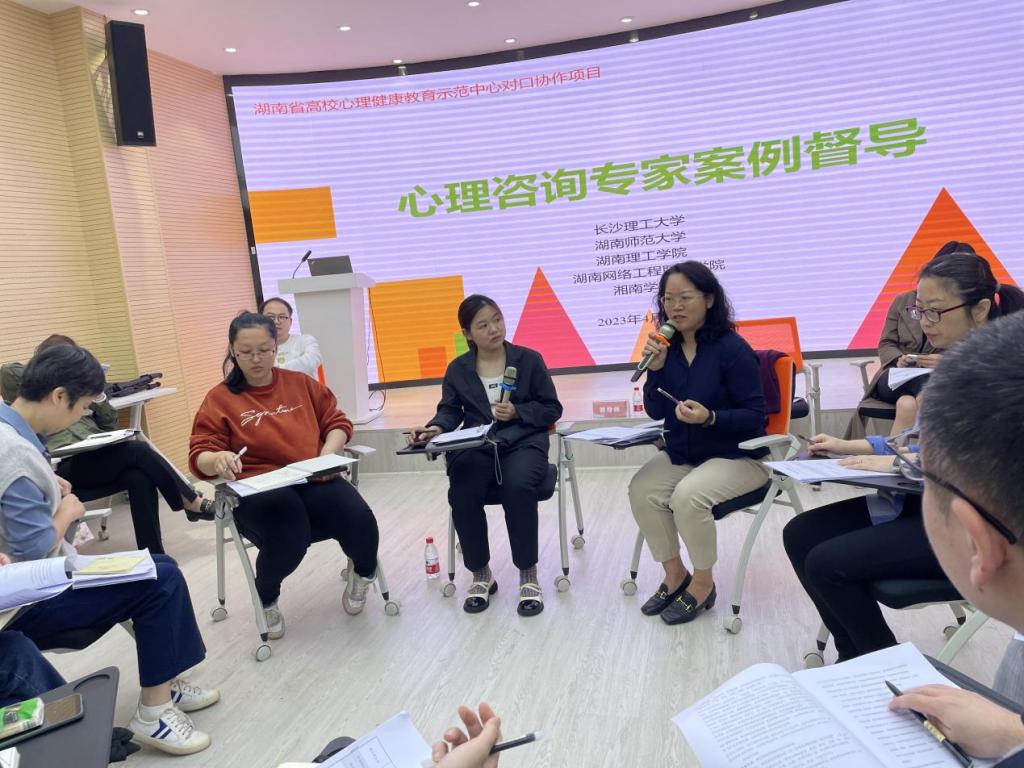 2023年4月14日,太阳成集团tyc122cc入口心理中心作为湖南省高校心理健康教育示范中心,联合湖南师范大学和三所对口协作学校,于湖南师范大学心理中心团体辅导室开展了2023年春季学期第一期心理咨询案例专家督导。本次督导师为北京师范大学心理学部副教授、临床与咨询心理学专硕项目硕士导师、中国心理学会临床心理学注册工作委员会首批督导师孟莉老师(督导号:D-06-059)。本次督导采用内圈和外圈结合的方式进行,五所高校共35位心理中心专职老师、兼职咨询师参加,本校兼职咨询师谢贝和李洁老师进行了案例报告。
