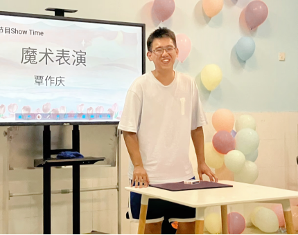 欢送会伊始,金盆岭以及云塘两边的助理都进行了自我介绍,每位助理都通过简短的自我介绍拉进两边校区的助理之间的距离为后面的游戏环节做好铺垫。接下来,是所有助理期待已久的节目环节,由陈睿熙和宋新伟带来的《成都》让所有人开启了活跃模式,接下来的《开心超人》瞬间点燃全场气氛,舞蹈,魔术,合唱等节目让每位助理乐开怀。随后,大家进行了电臀超人,你画我猜和手忙脚乱等游戏,所有助理和老师充分参与其中,苏赛兰表示,有趣的不仅是游戏,还是身边一起玩的同伴们。