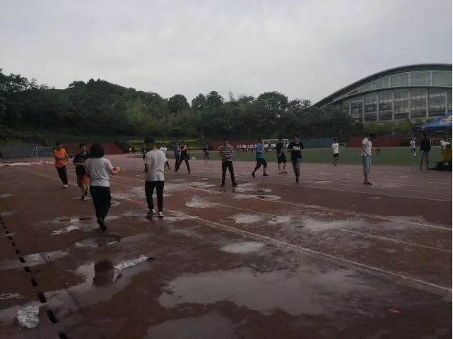 大批学生欢聚于东径田径场。