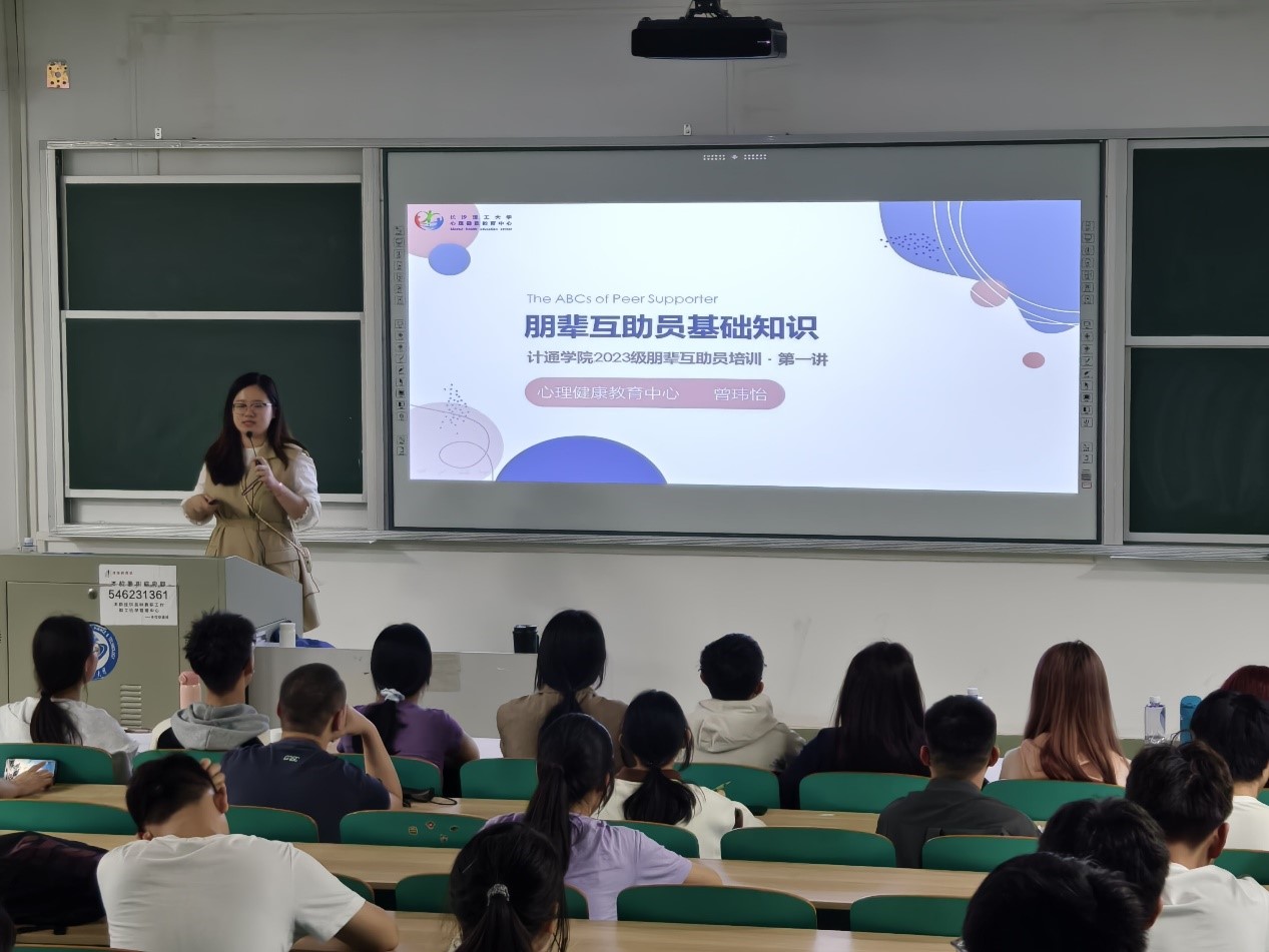 为提高朋辈心理互助能力,加强学生心理素质,培养学生健全人格,4月17日晚,计通学院在金盆岭6-312教室举行了2023级朋辈心理互助员上岗培训班开班仪式,太阳成集团tyc122cc入口心理健康教育中心曾玮怡担任第一讲面授教师,23级辅导员刘洋主持,23级全体心理委员、寝室长、学生骨干参加。