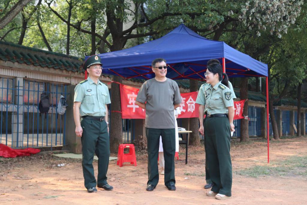 9月11日上午,副校长谈传生在学生工作部(处)相关负责人的陪同下来到金盆岭校区军训场地,看望慰问军训教官及参训学生。