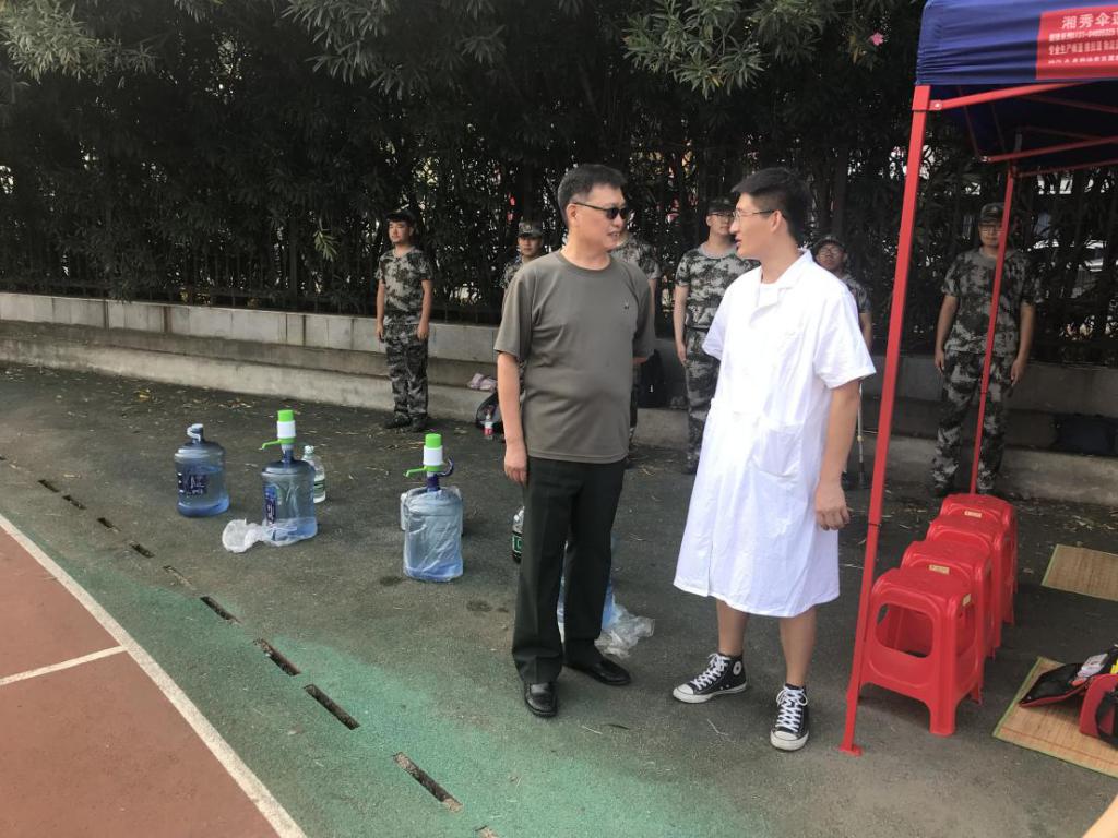 来到军训场地,谈传生详细了解了各连队参训学生的训练和适应情况,关切询问了承训教官的学习和生活情况,对教官及连队干部在军训期间克服高温天气,坚持高标准训练予以充分肯定,同时叮嘱各连队队干部和学生劳逸结合,以最佳的身体和精神状态完成军训工作。