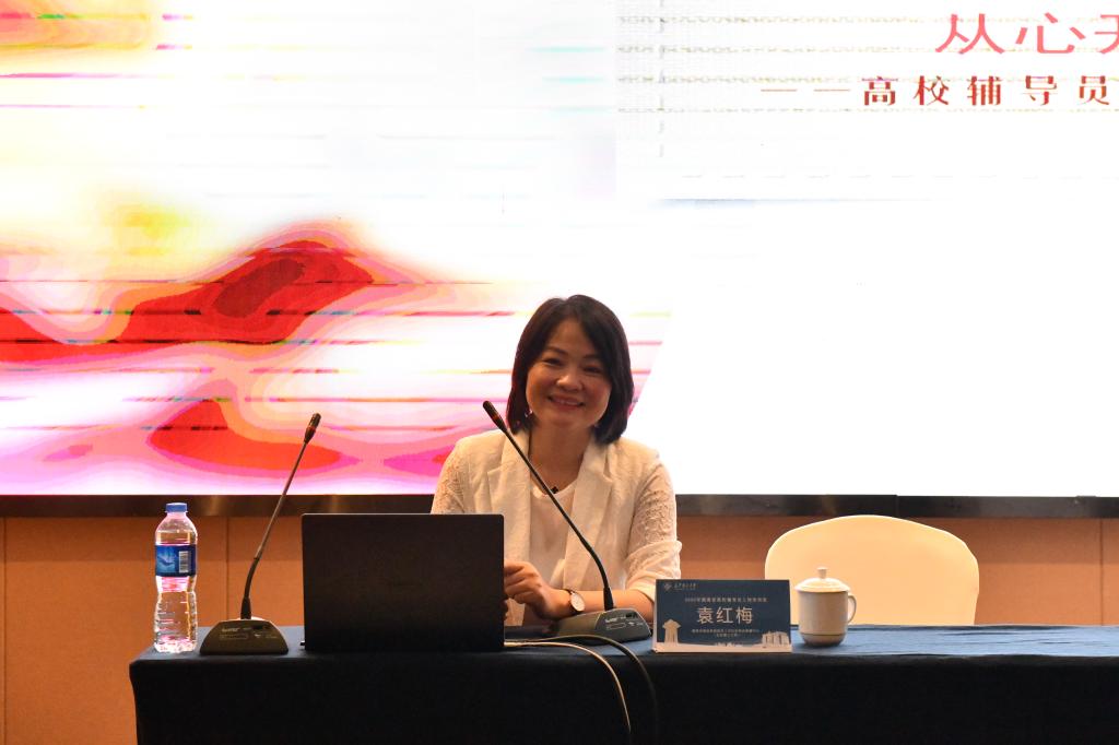 中南林业科技大学心理健康教育中心主任袁红梅教授以《从心开始 以心引领》为题,结合具体案例阐述了辅导员开展心理健康教育的优势及角色定位、工作途径、具体工作方法。