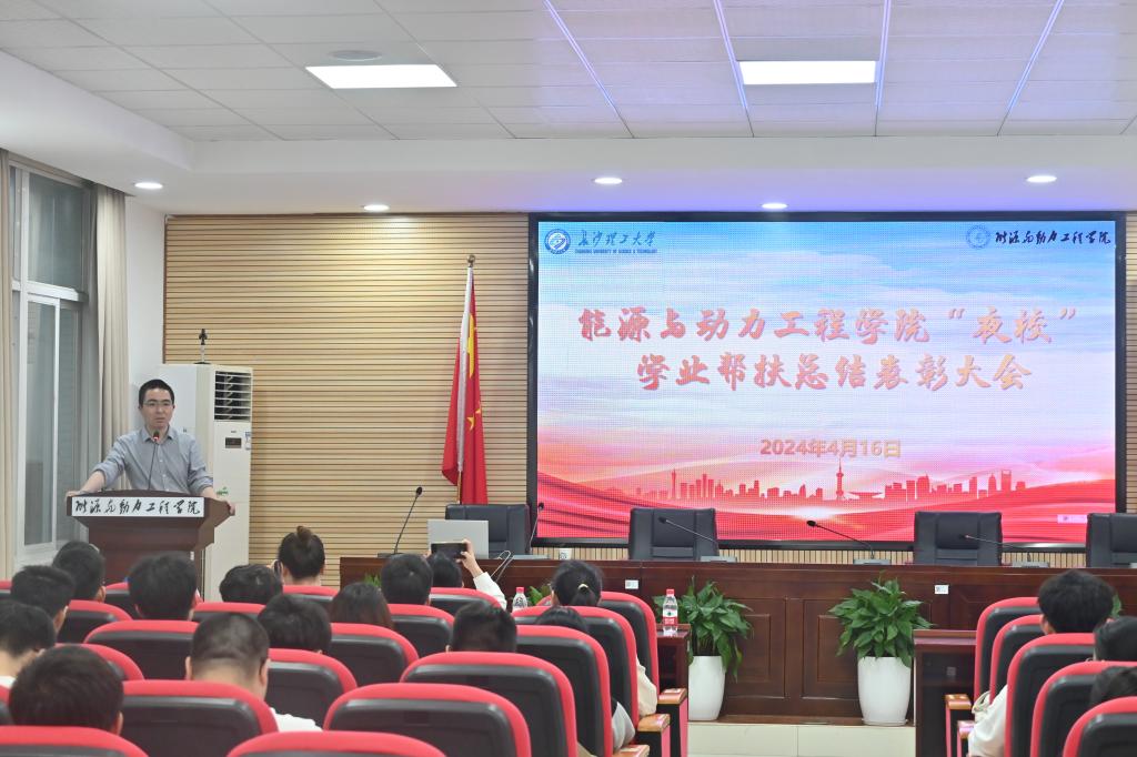 4月16日下午,能源与动力工程学院在新能源2号大楼502会议室举办“夜校”学业帮扶总结表彰大会。会议由学工办胡雅妮主持,学院党委副书记兼副院长张晓烽,学工办罗亦欧、陈颖,全体辅学志愿者和部分被帮扶学员参加本次活动。