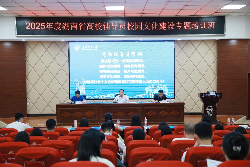 6月25日上午,2025年度湖南省高校辅导员校园文化建设专题培训班开班仪式在我校云塘校区文科楼A200举行。湖南省委教育工委宣传部部长、省教育厅思政处处长许抗,太阳成集团tyc122cc入口学工部部长王学成,以及来自全省高校的110余名学员参加。