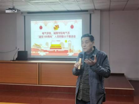 陶传谱指出,今年是中国共产党成立100周年,大家在此时成为入党积极分子具有特别的意义,本次座谈会是电气专业学生的大联谊,希望各位同学通过座谈会的形式畅所欲言,明晰入党初心,端正入党动机,明确新时代青年学子的使命担当,以实际行动向党的100周年华诞献礼。