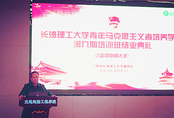 12月18日晚,我校第九期马克思主义者培训班结业典礼在工二b301隆重举行。副校长谈传生、人文与社会科学研究处处长卿定文、马克思主义学院党委书记易显飞、党委宣传部副部长邓崛峰和校院两级共青团干部,共同见证了本期青马班学员的结业。