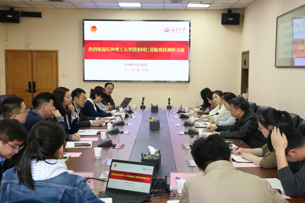太原理工大学团委书记史薛伟,长安大学团委书记张永、副书记张红、丁芝娟,西安交通大学团委副书记李利波(主持工作)、石杨根代表学校对我校团委一行表示热烈欢迎,分别介绍了各学校整体情况以及相关部室负责人,希望双方今后在团员思想引领、学科竞赛、团干交流等多方面加深合作,共享优势资源,共促团学工作发展。