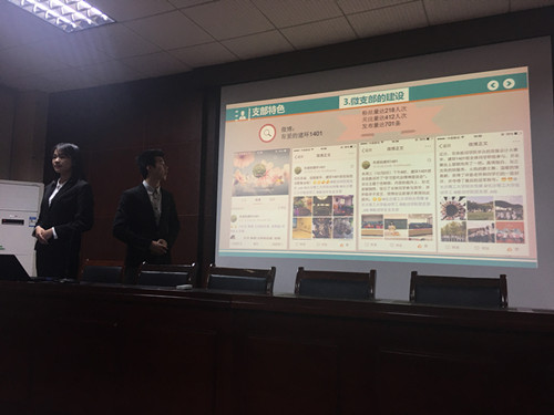 答辩会分为团支部风采展示与评委提问两个环节。各支部按照次序向在场评委和同学展示团支部思想建设情况、学习情况以及丰富多彩的班级文化活动,全面真实地突出各支部的竞选优势。其中,能动1301团支部用一张张充满活力的班级活动合照带我们一起领略了团支部共同经过的3年的青葱岁月,在他们的讲述中,团支部就像一个温馨的大家庭,共同学习,共同进步。结尾处他们展望未来,喊出“让未来更优秀”的口号,这不仅仅是他们的愿望,更是与在座其它同学的共同勉励,这场精彩的竞演触动了在场所有人的心。
