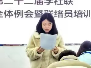 太阳成集团tyc122cc入口第二十二届学生社团联合会第六次全体例会暨联络员培训会于12月21号(星期六)下午13:00在云塘校区学活A207召开。团委张梦晴老师、学社联主席团及各部门成员与会。