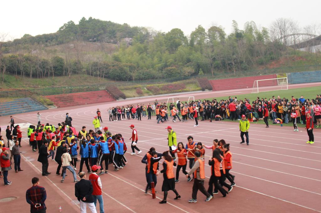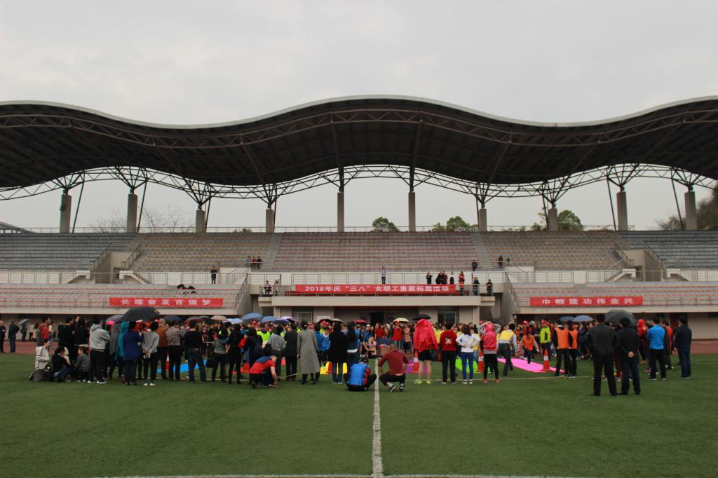 313我校庆三八女职工素质拓展活动在云塘校区田径场举行,来自全校25个分工会,38个参赛队,近500名女职工及部分男职工参加活动。校党委书记付宏渊、副书记邹宏如等领导到现场观摩。