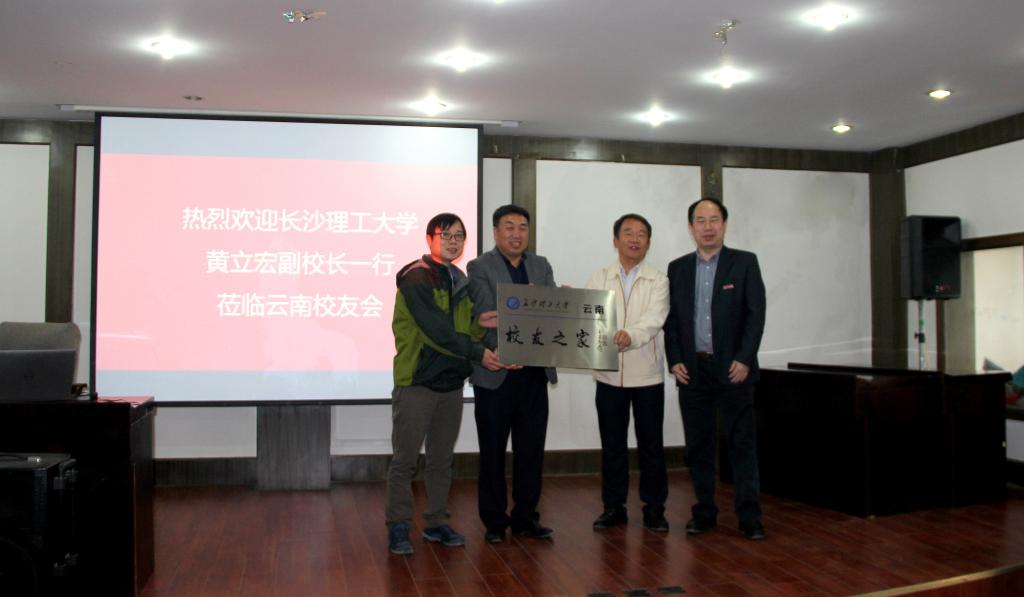 下午,黄立宏一行参加了云南校友代表座谈会暨校友会换届会议。会上,黄立宏对校友们的到来表示感谢,向校友们介绍了学校发展建设情况,听取了校友代表对学校办学建议和意见。会议还推举产生了云南以梁林坤为会长、王实秋为秘书长的新一届校友会理事会,并举行了云南校友会“校友之家”授牌仪式。校友总会副会长黎正稳感谢上届云南校友会多年来对学校的关心和支持,感谢校友们对学校的关爱和关注,希望云南校友凝聚在母校平台上,在新一届理事会机构领导下加强联系和沟通,进一步丰富校友活动内容,相互促进、共同发展。