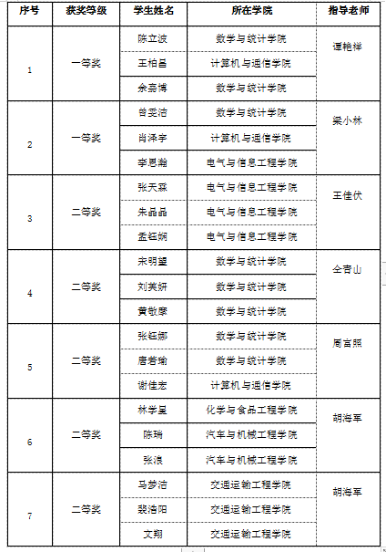 日前,2019年国际大学生数学建模竞赛成绩揭晓,我校学子在竞赛中获得一等奖(Meritorious winner,简称“M”奖)2项,二等奖(Honorable Mention)5项,获奖学生来自数统学院、计通学院等6个学院。其中,由数统学院谭艳祥老师指导,陈立波、王柏昌、佘嘉博等3名同学组成的代表队和梁小林老师指导,曾雯洁、肖泽宇、李思瀚3名同学组成的代表队荣获一等奖,这是我校自参加此竞赛以来首次获此奖项,取得了M奖“零”的突破。
