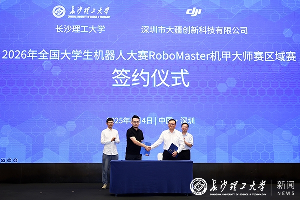 会上还举行了全国大学生机器人大赛RoboMaster机甲大师赛合作签约仪式,刘朝晖代表我校与深圳市大疆创新科技有限公司正式签署战略合作协议。此后,校企双方将围绕赛事组织、创新孵化基地共建、区域赛落地等方面开展深度合作。