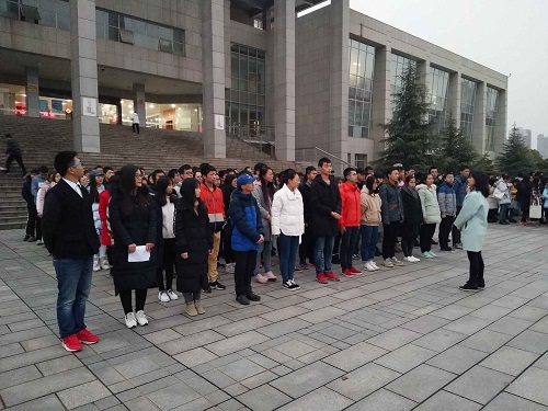 1月2日上午,数学与统计学院在云塘校区图书馆门前举行升旗仪式,院党委副书记马丽、17级辅导员郑国义和2017级全体本科生参加。
