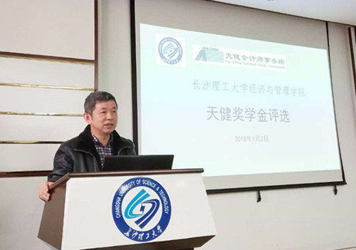 1月2日,经济与管理学院首届天健奖学金评选在文科楼E501举行。天健管理合伙人、副总裁、湖南分所总经理曹国强,天健高级合伙人、湖南分所副总经理李永利,天健湖南分所人力资源部部长盛旭,经管学院党委副书记涂道勇,学院财会系老师袁江云、徐先知担任评委。评选会由学工办计潇主持。