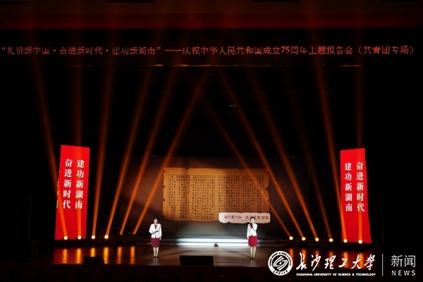 11月6日,由省委宣传部、省委网信办、省教育厅、团省委共同举办,湖南教育电视台和我校承办的庆祝中华人民共和国成立75周年主题报告会(共青团专场)在我校云塘校区大会堂举行,通过缅怀革命先辈、礼赞英雄模范和争做时代新人三个篇章,进一步激发广大青年学生的爱国情怀和奋斗精神。团省委书记李志超,省委宣传部二级巡视员王军湘,校党委书记付宏渊,校党委副书记方琼出席报告会,主承办单位的负责人、团省委机关全体干部、中小学分管教学的校领导、省直机关和各市州青年代表以及我校400余名师生参加报告会。