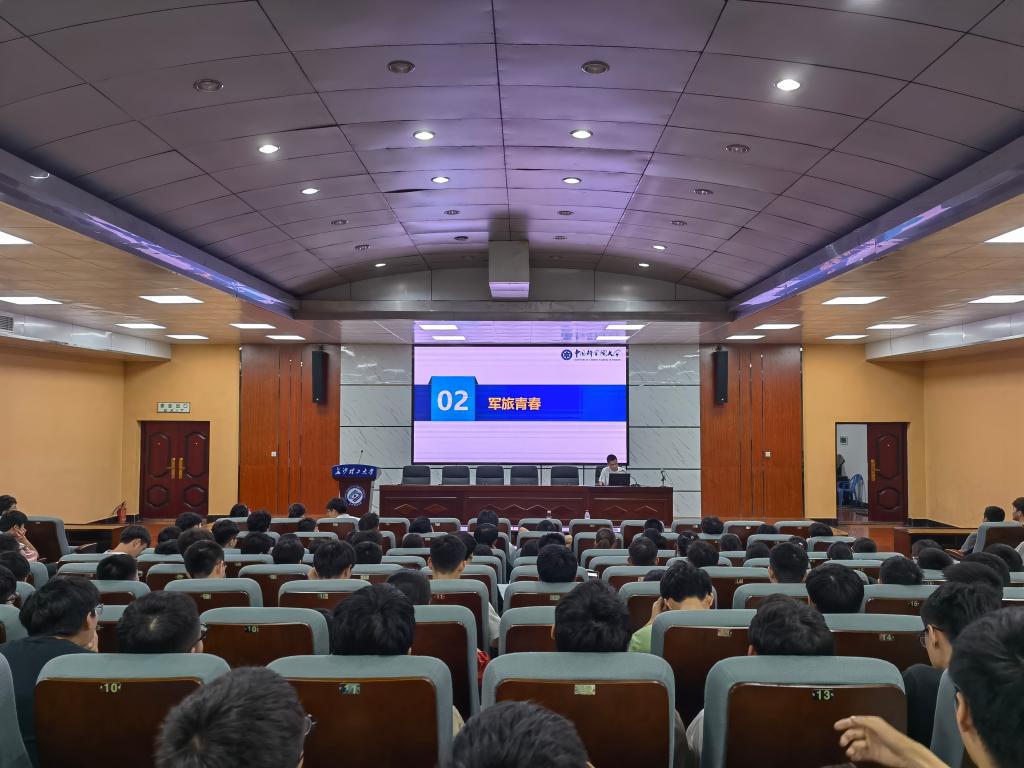 首先,蒋利扬向同学们分享了他的大学成长经历。经历两年迷茫、颓废的大学生活后,在征兵宣传大使李新普学长的影响下,毅然选择了征兵入伍。服役两年的生活从最初的不适应、自我怀疑到科科优秀、火线入党,两年如一日的坚持和付出,也让他变得更加沉稳、坚毅。退伍复学后,他的学习生活也变得积极、上进,多次获奖学金、学科竞赛奖等十余项,成功考取中国科学院研究生。他用自己的人生转变告诉同学们:“想要破茧成蝶,必先作茧自缚”,这里的“茧”的不是让大家不思进取,自娱自乐,而是静下心,专心做事,厚积而薄发。”互动环节,蒋利扬针对同学们的提问都一一做出解答。