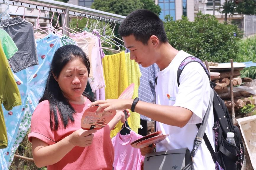 国家资助政策社会实践宣讲团还前往了平江县汉昌街道天岳社区和天岳街道仙若村。他们特别定制了印有国家资助政策和平江县资助中心学生服务热线电话的“爱心宣传扇”,在挨家挨户进行走访宣讲中完成调查问卷,深入了解当地居民对国家资助政策的观点及态度,热情地为村民答疑解惑。