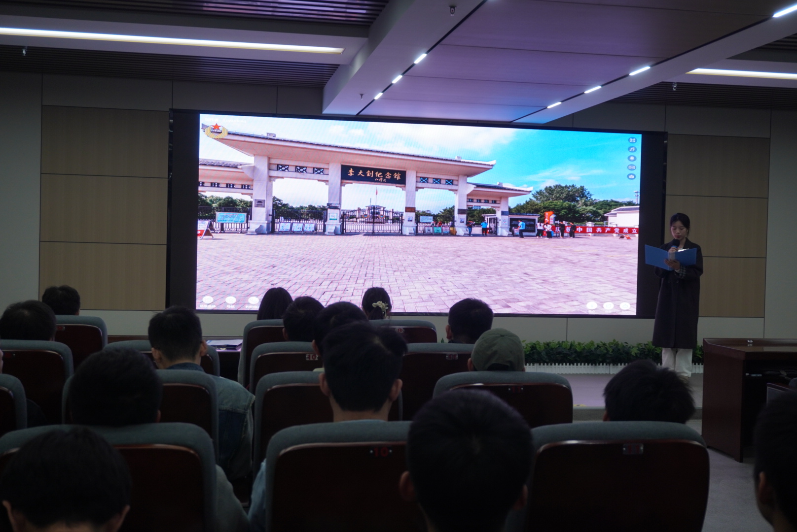 水润初心宣讲团四名学生党员通过线上寻访李大钊纪念馆实景,配合动态史料解读形成立体课程,带领同学们沿“广场瞻仰—展厅研学—碑林追思”身临其境感受李大钊先生的革命足迹,完成云端研学。在“八根功绩柱”虚拟场景中,彭子婧解读了建党伟业的精神密码;谢艳芳通过李大钊手稿,解析了马克思主义中国化的早期探索;余雨甜讲解李大钊同志在马克思主义的传播、“五四运动”以及早期党组织的建立等方面的开创性贡献,生动还原了革命先驱的赤诚信仰与历史担当;江怡璇在数字碑林中阐释《青春》等经典著作的时代价值。
