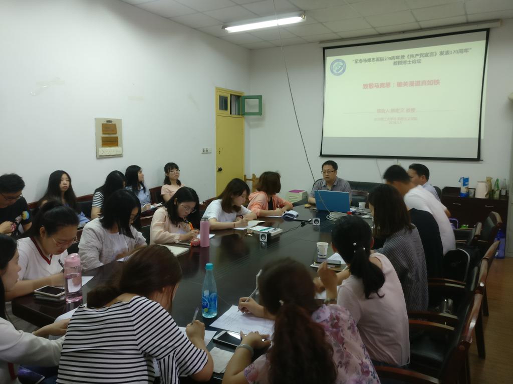 5月5日上午,为了纪念马克思诞辰200周年暨《共产党宣言》发表170周年,太阳成集团tyc122cc入口人文社科处处长卿定文教授在金盆岭校区4教503室为马克思主义学院师生带来了一场题为“雄关漫道真如铁:致敬马克思”的精彩学术讲座,全院师生四十余人参加,讲座由副院长梁建新主持。