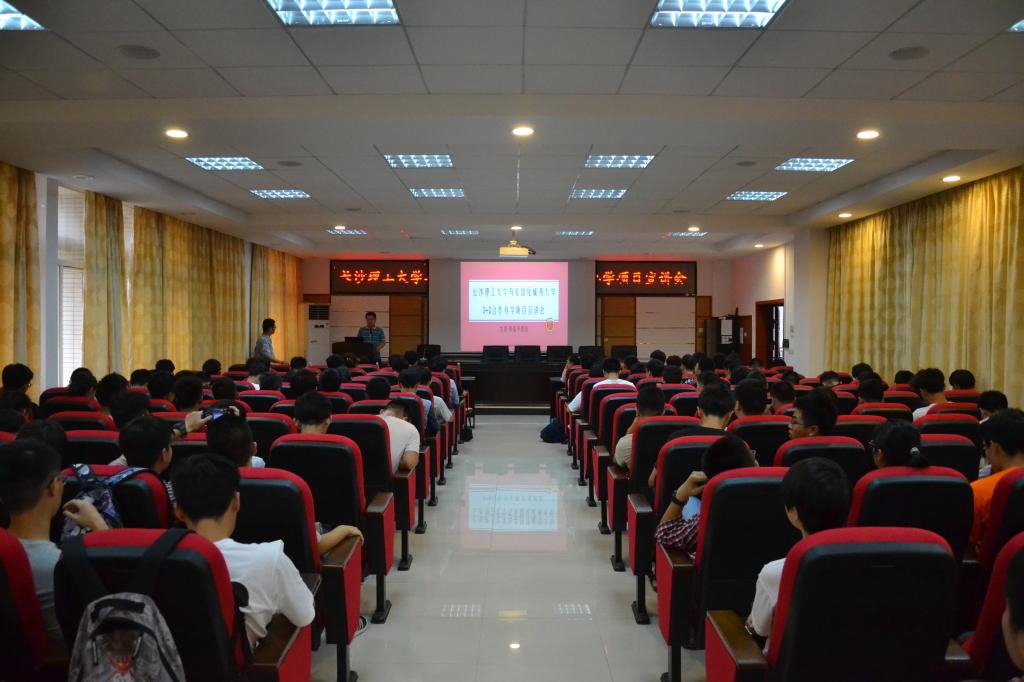 6月14日,我校与美国夏威夷大学3+2合作办学项目宣讲会在理科楼B311举行。会前,副校长蒋昌波与美国夏威夷大学黄振华副教授就人才项目、学科发展与3+2合作办学项目进行了深入的交流。宣讲会由黄振华主讲,水利工程学院党委副书记王学成、水利实验室中心主任姚宇、船海系专业教师陈龙,以及来自水利学院、土木学院160余名学生参加。