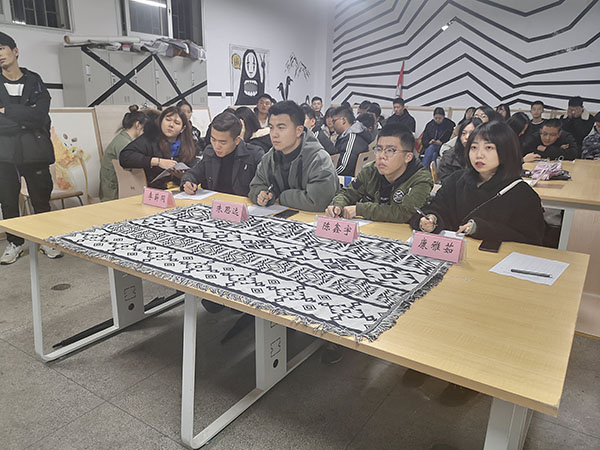 1213日,设计艺术学院于金盆岭校区3号教学楼602教室开展了2018级班级文化形象设计大赛评选活动。2017级辅导员陈鑫宇、2018级辅导员朱思远及学生干部李薪同、康雅茹等担任此次比赛评委。