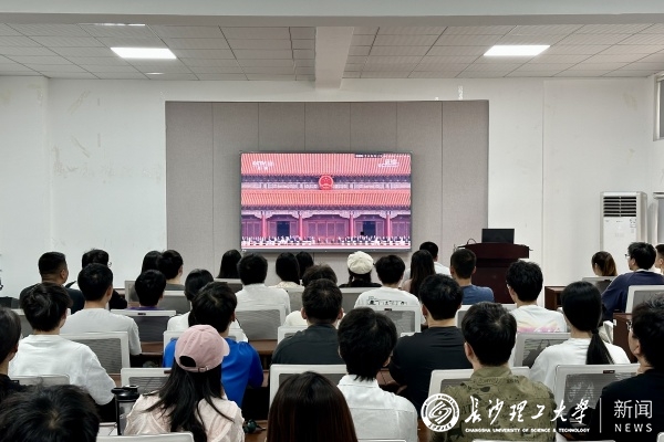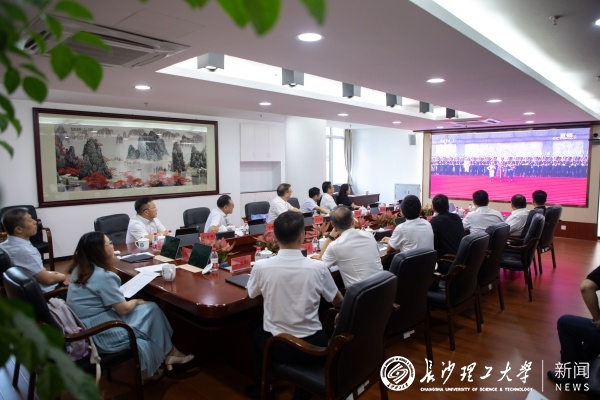 9月3日上午9时,纪念中国人民抗日战争暨世界反法西斯战争胜利80周年大会在北京天安门广场隆重举行。中共中央总书记、国家主席、中央军委主席习近平发表重要讲话并检阅部队。我校党委理论学习中心组全体成员在一办公楼四会议室集中收看会议直播,各二级党组织、校属各单位分别在校内55个会议室、教室组织师生员工、留校学生代表集中收看大会。其他学生也通过不同形式收听收看大会盛况。