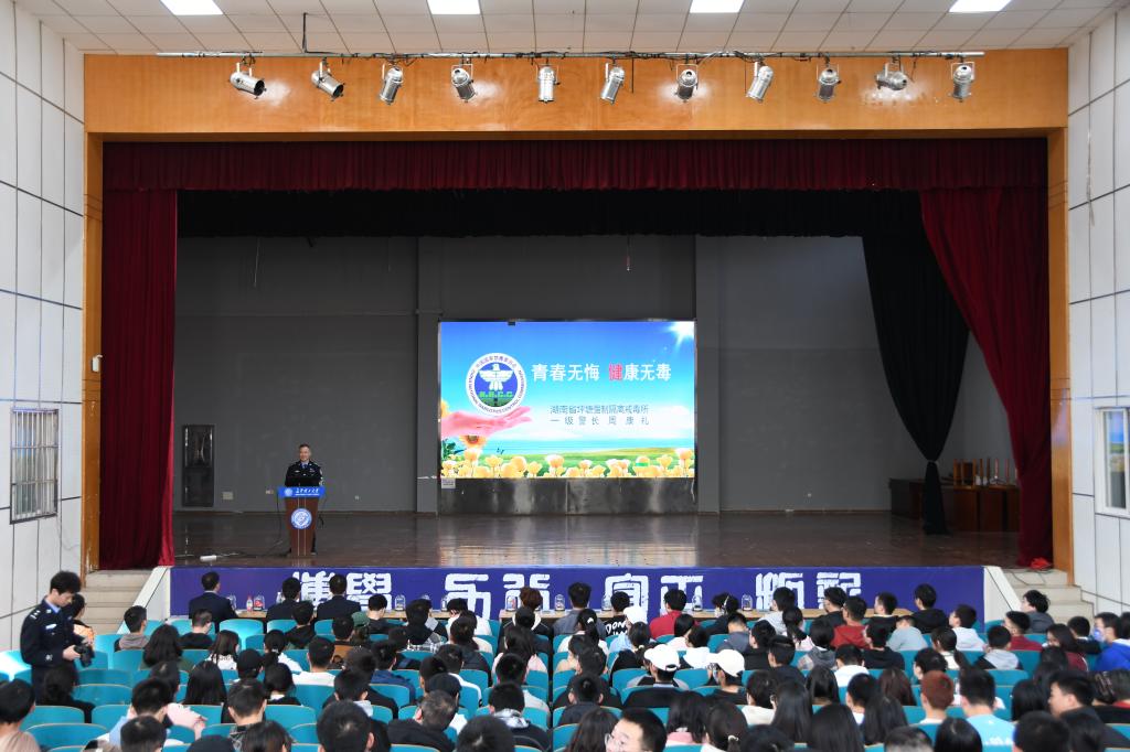 12月5日下午,由学校学生工作部主办,国际工学院承办的“青春无悔 健康无毒”禁毒教育专题讲座在大学生活动中心科技报告厅举行。本次讲座由湖南省坪塘强制隔离戒毒所一级警长周康礼担任主讲嘉宾。学生工作部副部长吴振华、国际工学院党总支副书记兼副院长乔法光以及300余名中外学生参加了此次活动。