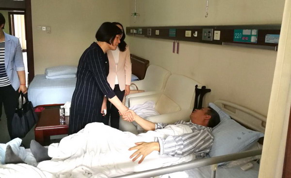 会谈前,于天琪一行专程赶赴医院看望慰问了黄柏青老师,转达了教育部、国家汉办领导的深切关怀与问候,亲切询问其伤情及生活起居等情况,嘱咐他安心治疗,争取早日康复。省教育厅副厅长徐伟、国际交流处处长周芳友一同前往医院慰问。