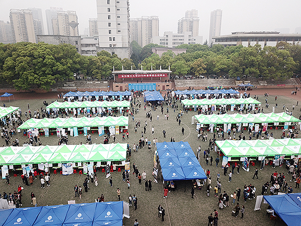 3月31日,我校2018届毕业生春季综合招聘会在金盆岭校区体育场举行,副校长谈传生、各学院党政主要领导以及全体就业工作干部全程参与,深入了解市场需求和行业动态,接洽用人单位并推荐毕业生。