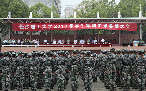 9月23日上午,2018级新生军训汇报总结大会在金盆岭校区田径场举行。校领导,省军区战备建设局学生军训办主任汤光强、参谋丁行行、天心区武装部部长周永顺,学校各职能部门和学院主要负责人出席。大会由副校长蒋昌波主持。
