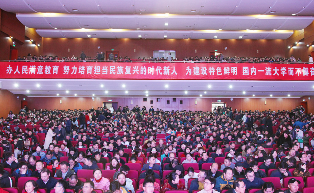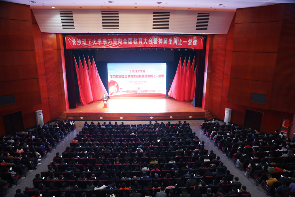 12月4日下午,我校在云塘校区大会堂举行学习贯彻全国教育大会精神师生同上一堂课,校党委书记付宏渊以《落实全国教育大会精神,培育时代新人》为题,为广大师生授课。校党委副书记邹宏如主持,在家校领导和近1500名师生代表参加。