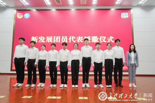 活动在庄严激昂的国歌声中正式拉开序幕。方琼为新发展团员代表佩戴团徽。239名新发展团员面向团旗庄严宣誓,坚定许下“请党放心,强国有我”的青春诺言。