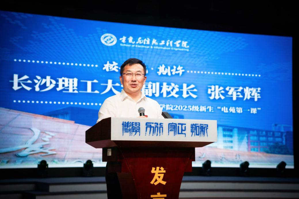 9月23日,电气与信息工程学院1999届校友、长沙科智防雷工程有限公司董事长兼总经理郑智勇捐赠仪式在2025级新生“电苑第一课”现场举行。副校长张军辉出席并讲话,校友中心、教育基金会、学工部、校团委、电气学院等相关单位负责人参加。