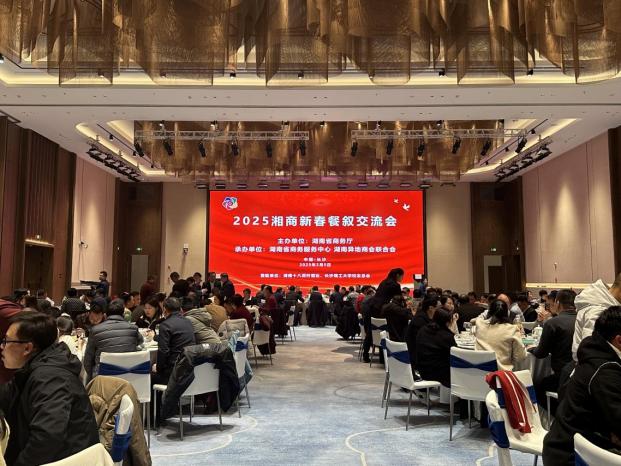 为深化“湘商回归”“校友回湘”“湘智兴湘”行动,共促湖南高质量发展,2月5日,2025湘商新春餐叙交流会在长沙隆重举行。本次活动由湖南省商务厅主办,湖南省商务服务中心、湖南异地商会联合会携手承办,我校校友总会赞助活动并组织10名校友企业家到场,与长沙、株洲、湘潭、益阳、岳阳等市县园区、商务投促部门相关负责同志共叙“湘”情,共谋湖南高质量发展。会上,我校校友企业家代表认真听取了湖南省商务厅关于我省“4×4现...