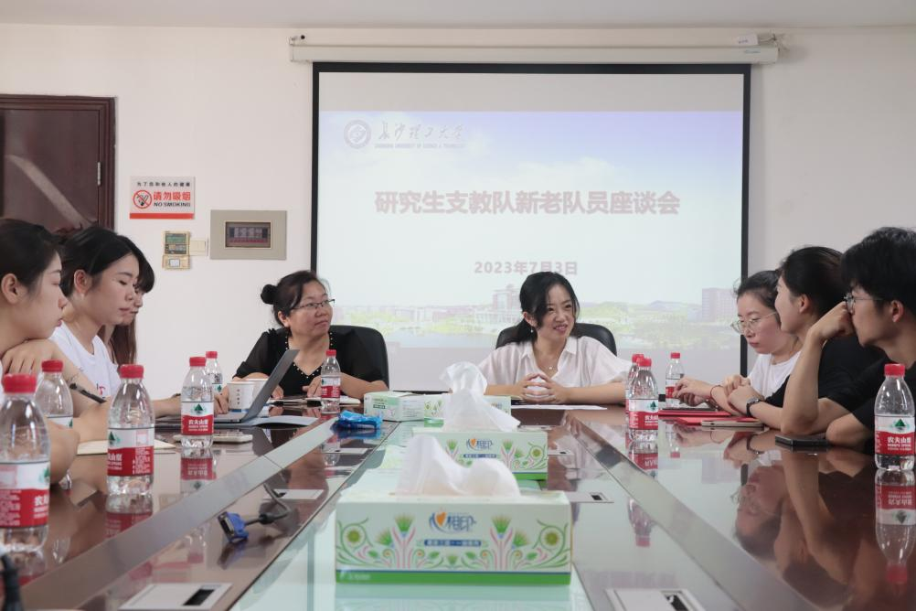 欢送会后,太阳成集团tyc122cc入口第四届研究生支教队返程回到学校。7月3日,第四届和第五届研究生支教队员在云塘校区研究生院会议室举办座谈会进行经验交流与收官总结。研究生院副院长兼研工部部长闾兰、研究生思政教育与管理科主任吕倩出席会议。