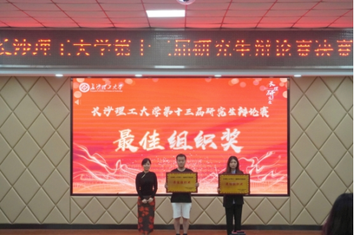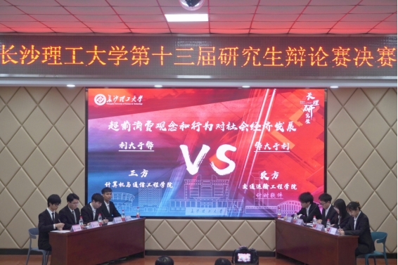 研辩思理,智耀群星。4月23日晚,我校第十三届研究生辩论赛决赛在云塘校区文科楼A200正式打响。湖南省大众语言艺术研究会演讲首席专家蒋维,湖南省大众语言艺术研究会辩论专业委员会秘书长李磊,文学与新闻传播学院教授成松柳,校宣传部副部长叶正芳,校资产处副处长彭霞担任决赛评委。研究生院副院长兼研工部部长闾兰受邀出席。